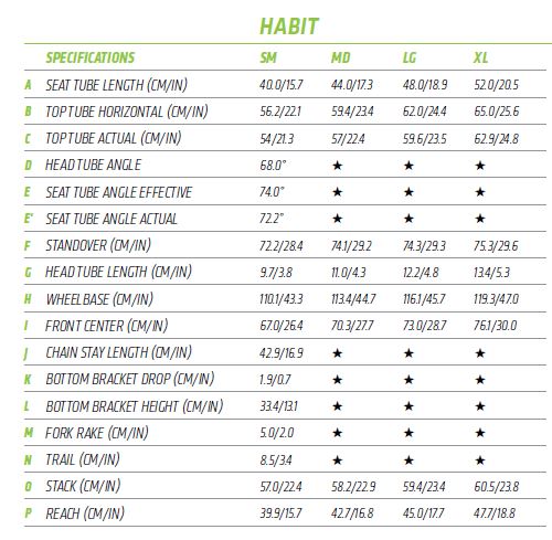 Cannondale Habit Dimensions